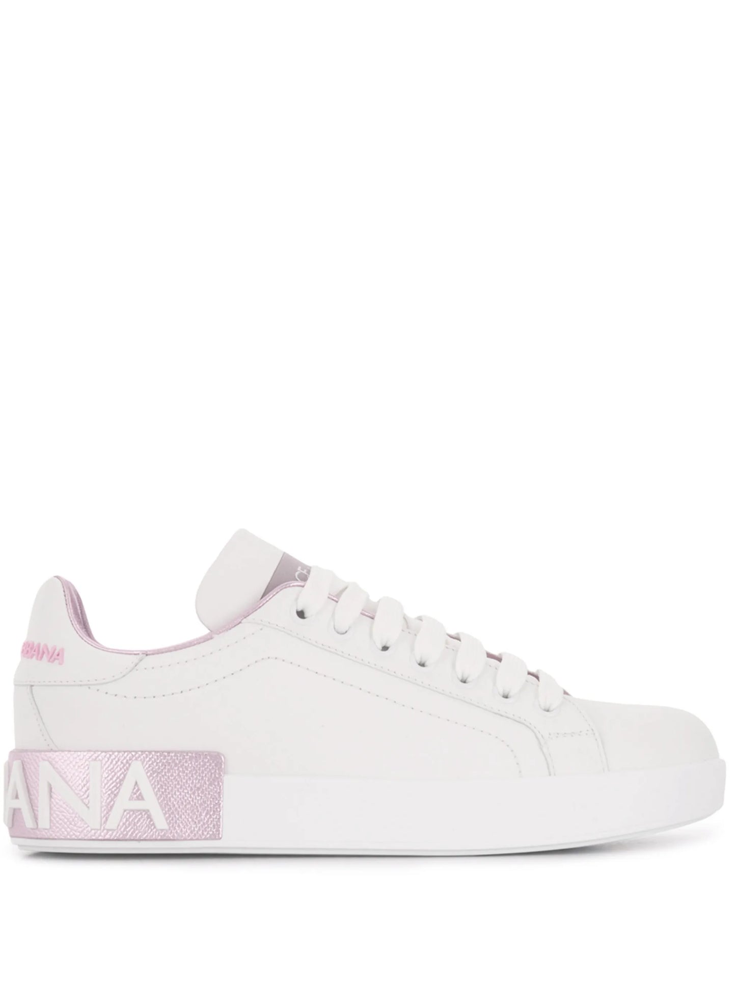 Portofino should be on your list, whether it's your shopping list or destination bucket list. If you don't have time to visit Portofino, consider wearing these white and pink leather Portofino low-top sneakers from Dolce & Gabbana as the next best option. If you can do both, we recommend that. Featuring a round toe, a lace-up front fastening, a logo patch at the tongue, a flat rubber sole and logo lettering at the heel.