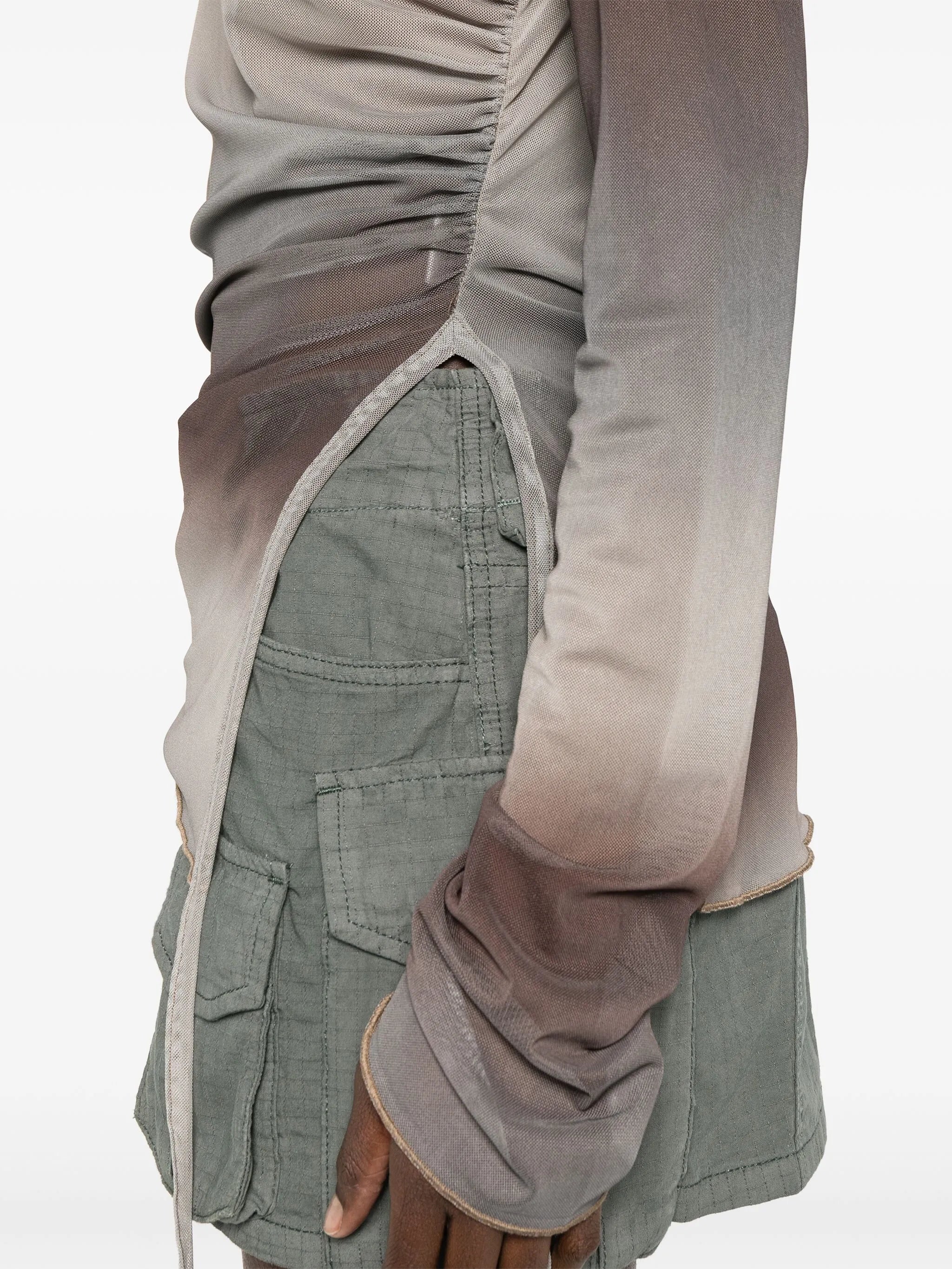 draped long-sleeve top
