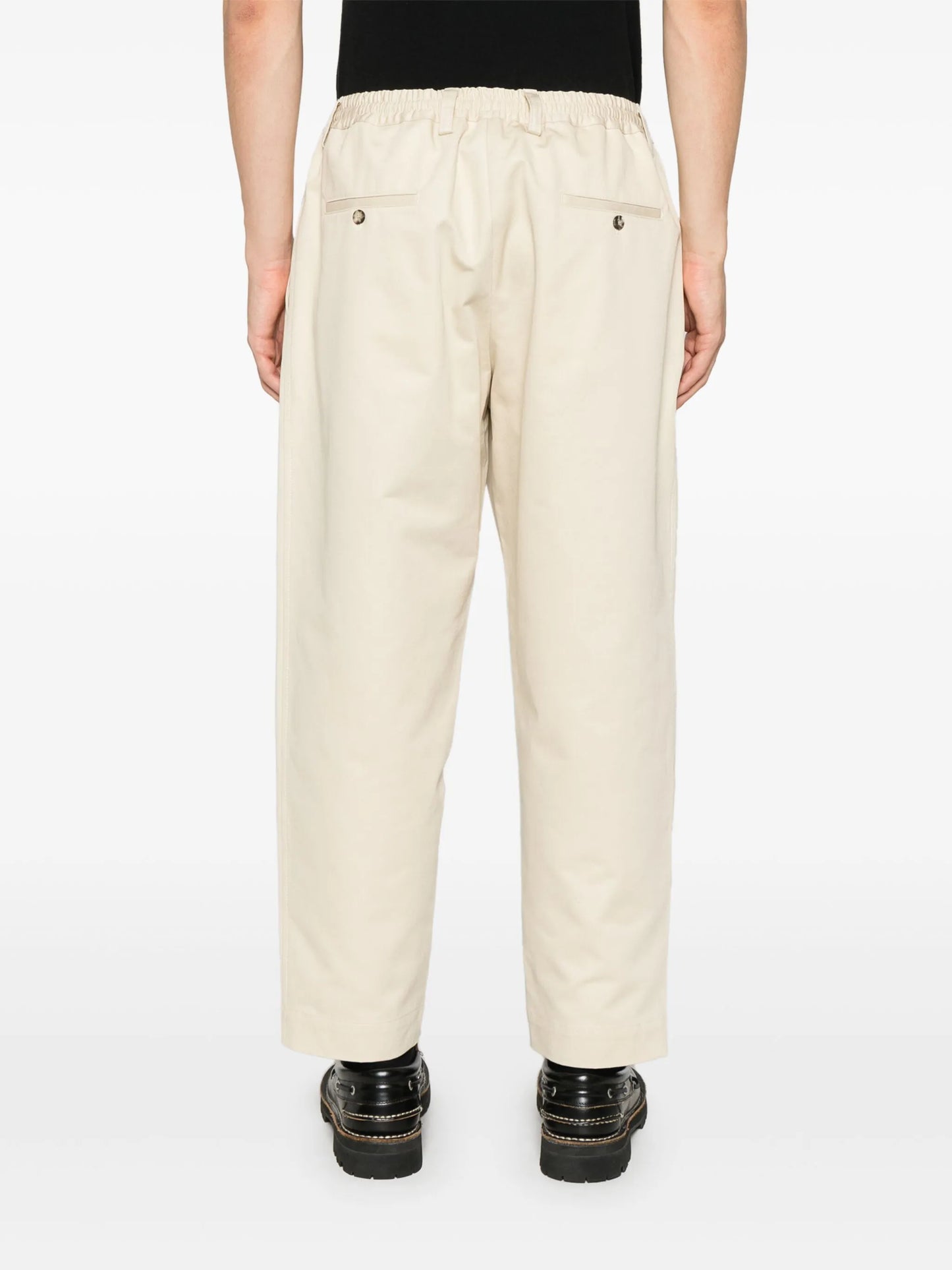 • Designed for a tapered leg, offering a loose unrestricted fit over the leg with a closer fit towards the ankle • Made from a midweight non-stretch fabric • The elasticated waist allows for a comfortable fit • The model is 1.87 m wearing size 48.