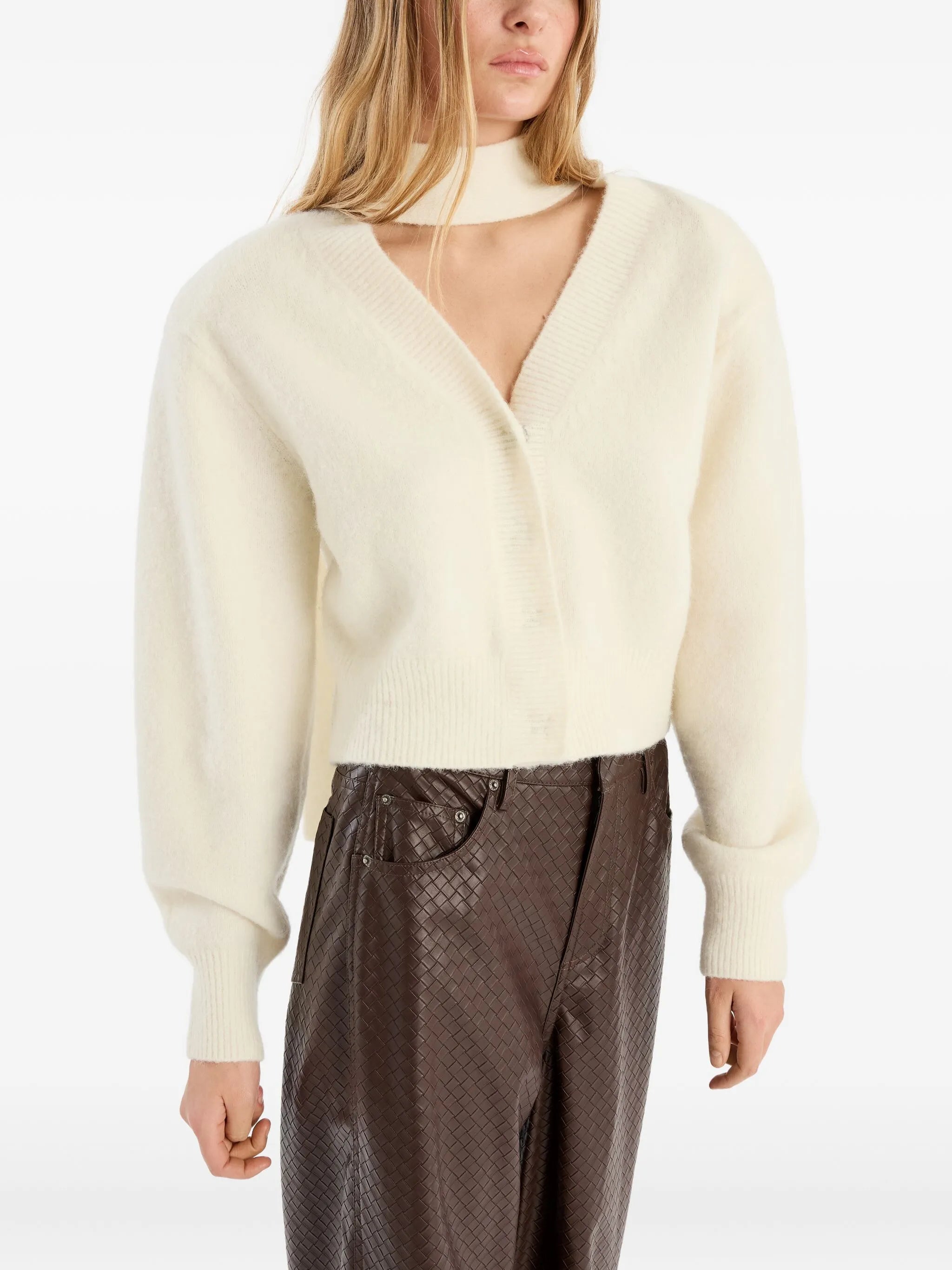 knit scarf-neck cardigan