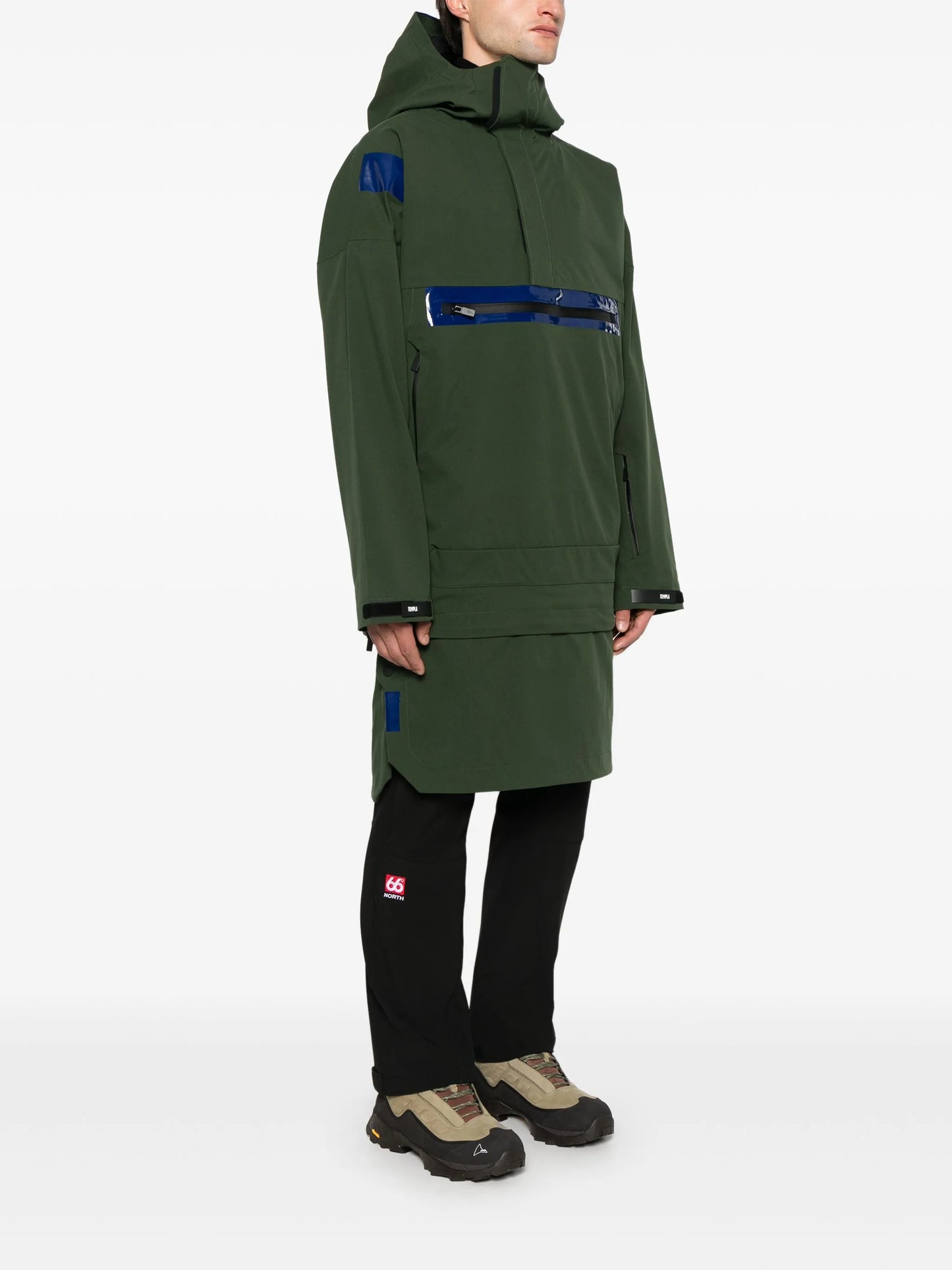 - concealed front touch-strap and half zip fastening