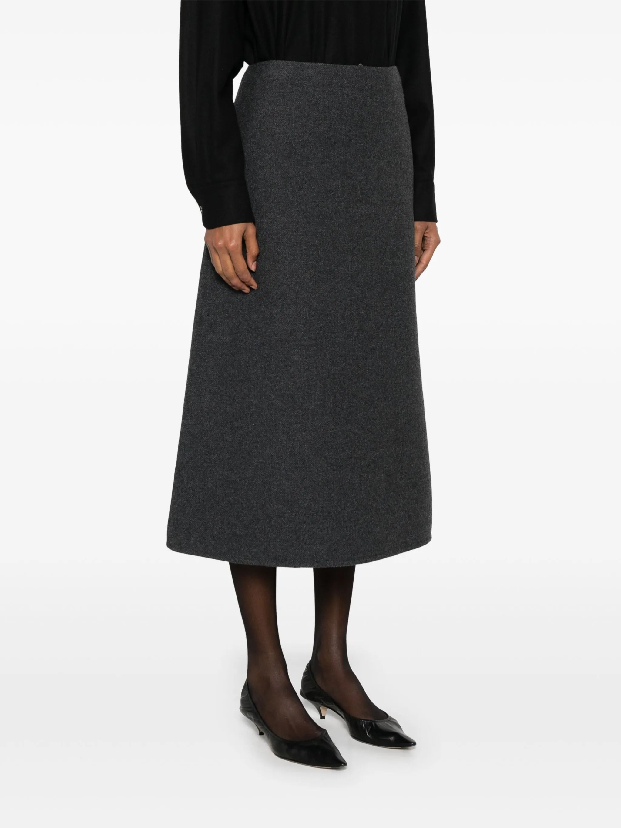 • Made from a midweight non-stretch fabric • This midi-length skirt is intended to be worn high on the waist • The model is 1.80 m wearing size 4.