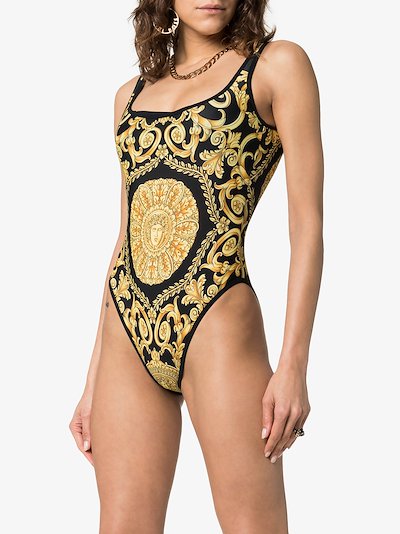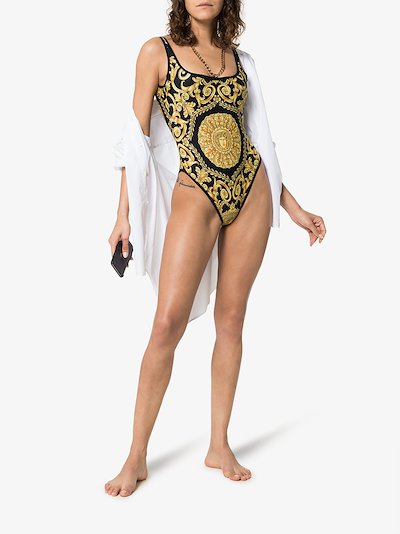 Versace backless Baroque-print swimsuit