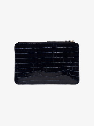 This navy Chloé Walden mock croc leather pouch features a gold tone top zip fastening, rectangular shape, crocodile effect leather details and a contrast lining. Let us tell you a funny story. When we first stepped out in this Chloé clutch, we got so many compliments that we became addicted to them. Yes, addicted. That’s why you’ll likely see us on our 87th birthday still carrying the darn thing.