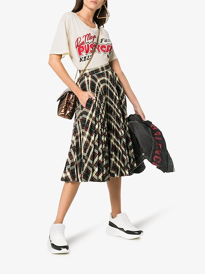 This white Gucci 'Pussycat' print cotton t-shirt is short-sleeved, and features a ribbed crew neck, dropped shoulders, a relaxed fit and a graphic print on the front. Your grandmama always told you that good things come to those who wait (which you were never good at). Thus, your fashion friends will have to wait for you to turn around in order to admire the high-fashion designer name printed on your back: Gucci. Wear yours to your jiu jitsu mornings in Mornington Crescent.